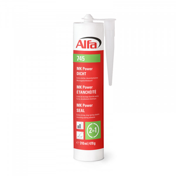745 ALFA MK POWER est une colle particulièrement puissante, durablement élastique pour le montage professionnel et une puissance de fixation dès l'application de 200 à 250 kg/m². Cette colle obtient un excellent résultat fixant sur presque tous les supports et matériaux. Mais tout particulièrement sur des surfaces absorbantes comme la charpente, et les tuiles en argile, le bois et les murs de constructions. Mais aussi sur des surfaces non absorbantes comme les plastiques durs, le verre, l’émail et les métaux.