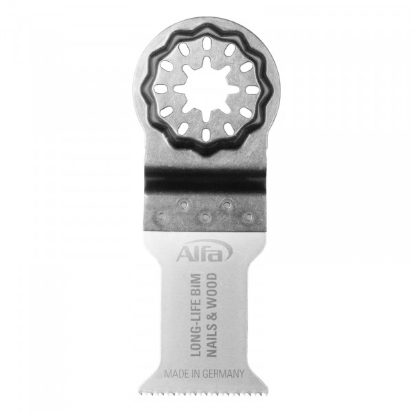 La lame de scie Alfa Multi 8325 Longlife est une lame de scie E-Cut de haute qualité et est idéale pour couper le bois, les clous incrustés dans le bois, le plastique, les plaques de plâtre et la maçonnerie. Elle est fabriquée en bi-métal de haute qualité et a une excellente longévité. La denture adaptée permet une progression rapide du travail ainsi qu'une qualité de coupe élevée. La lame de scie est disponible dans deux porte-outils différents et peut être utilisée avec tous les oscillateurs dotés d'un support Starlock ou StarlockMax.